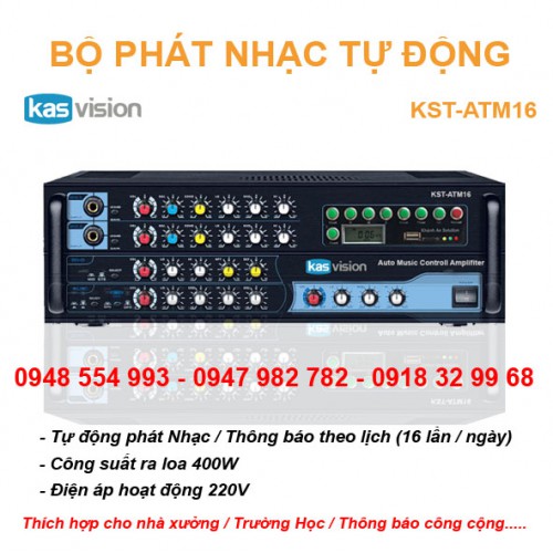 Bộ phát nhạc tự động KST-ATM16 kết hợp thông báo , model KST-ATM16 , chính hãng KASVISION , xứng đáng trở thành thiết bị ưa chuộng hàng đầu của mọi gia đình và các doanh nghiệp tại Việt Nam.